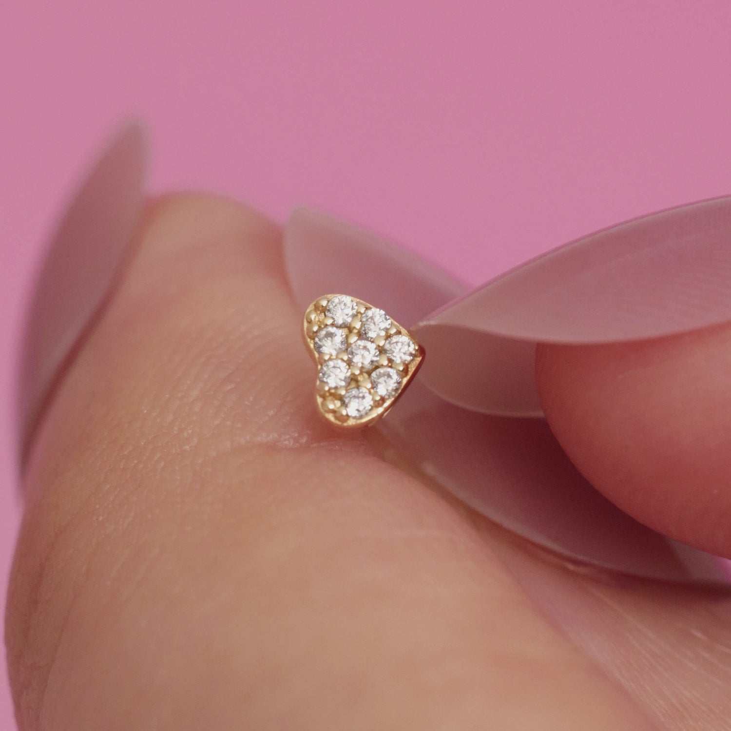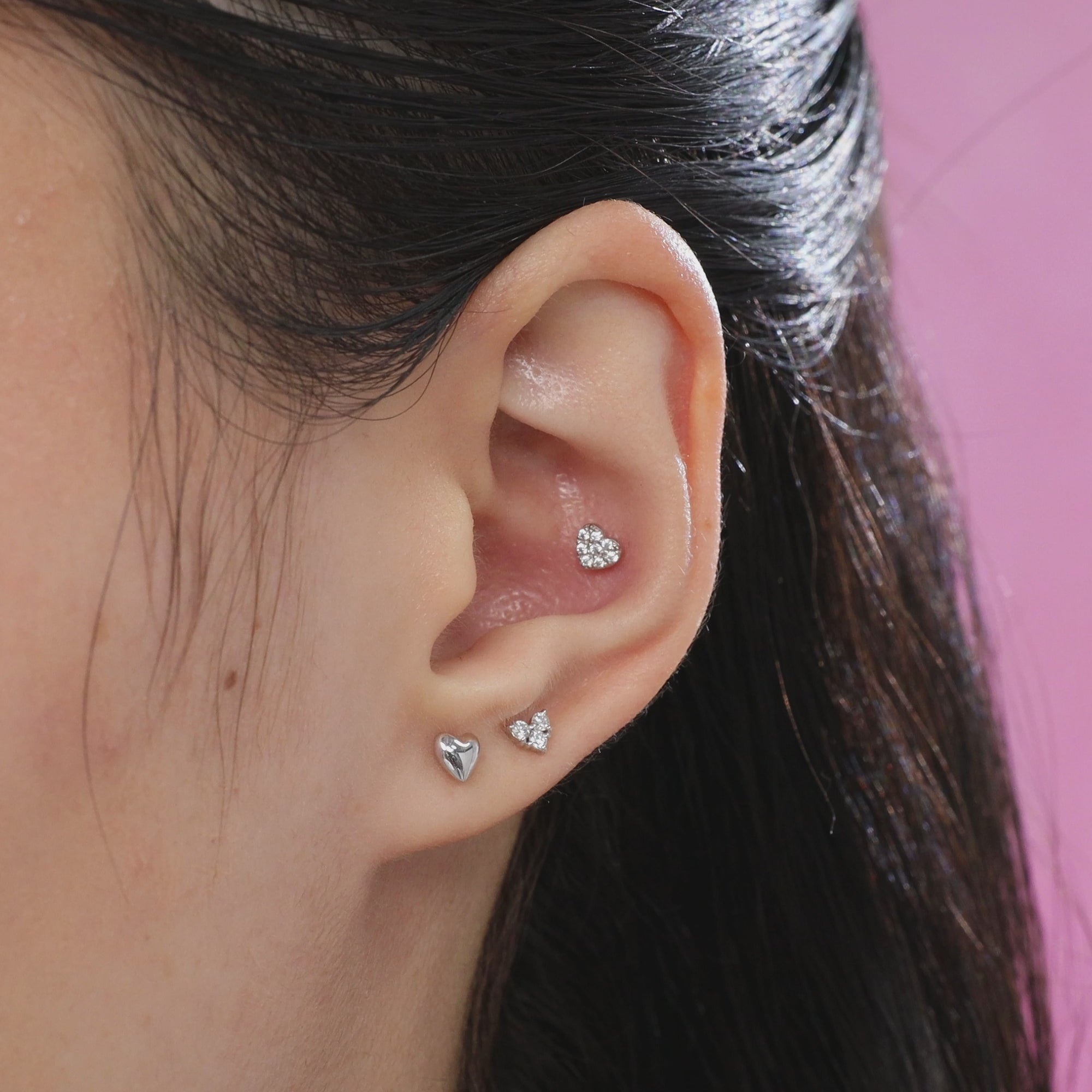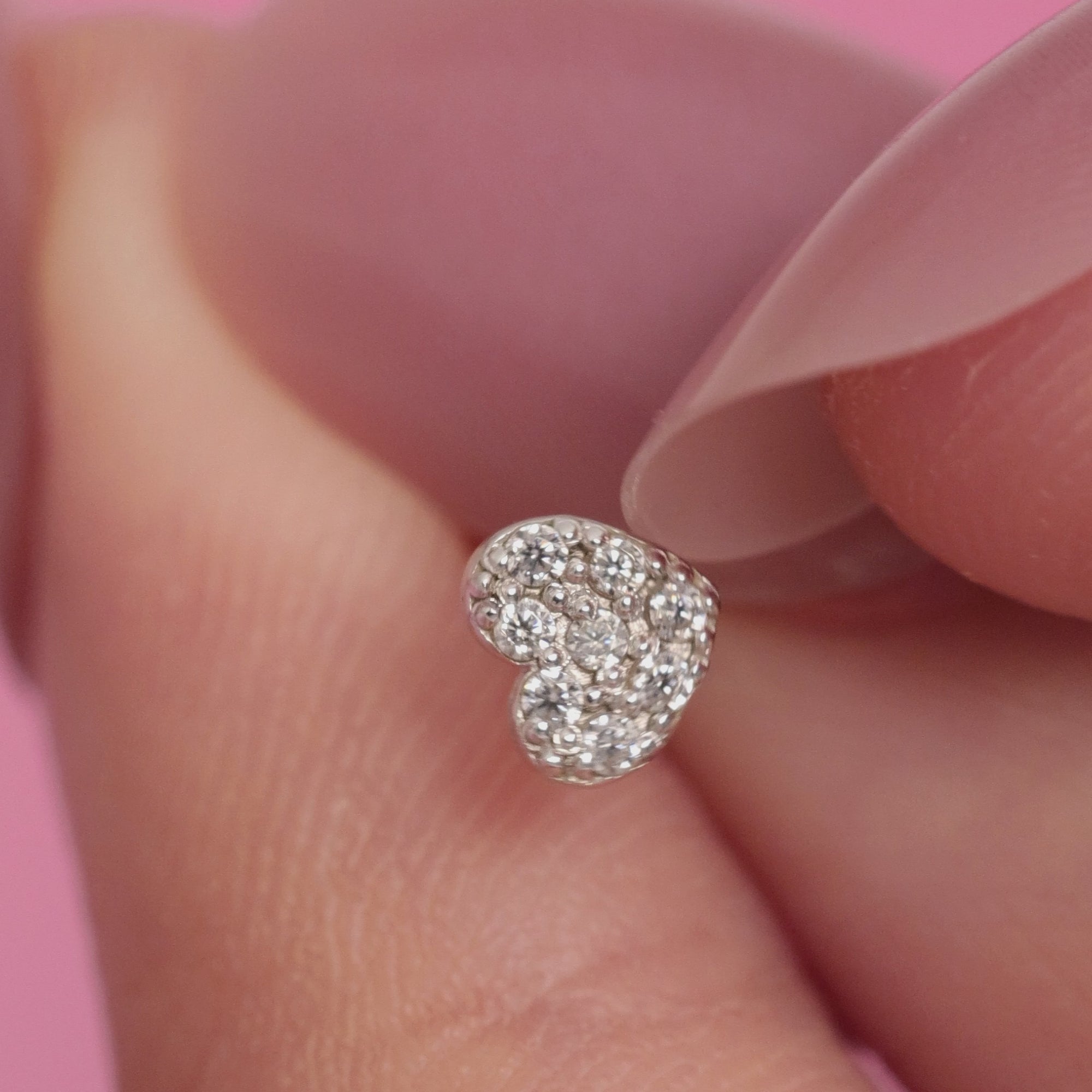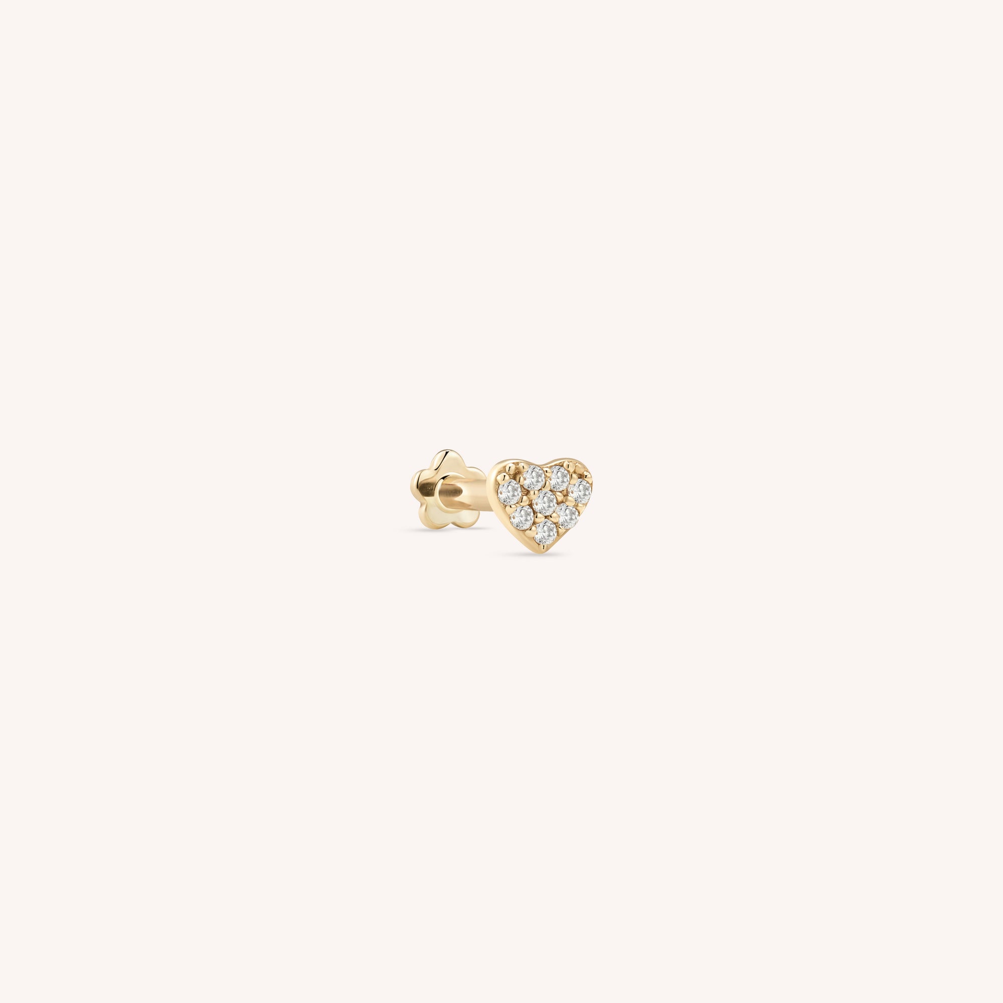 Quantity & Measurement One piece of Pavé CZ Heart Flatback Earring Gauge: 18G (1.0mm) Post: 6.5mm Front attachment: 4mm(W)*3.4mm(H) *Earrings for layering purposes only. Sold separately.